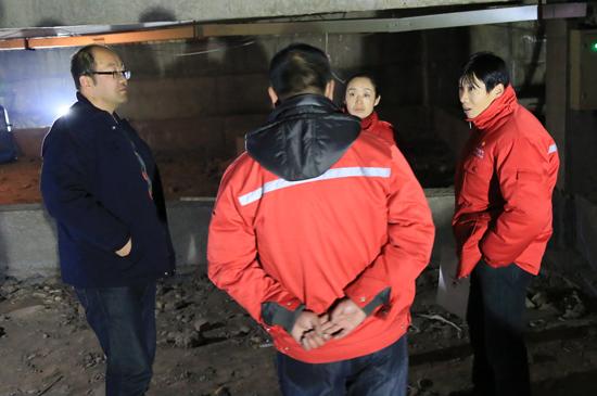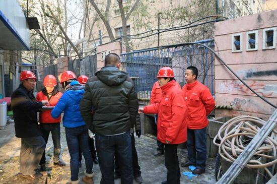 安检人员在麒麟湾这处天然气总阀门被“圈”的地下室里商量处置方法,如果没有政府执法部门出面协调,单靠燃气企业的隐患通知单,是根本不可能消除这处重大隐患的。本网记者 崔永焘 摄