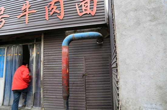虎台二巷的一家牛肉面馆,杂物间将天然气管道包裹。本网记者崔永焘摄