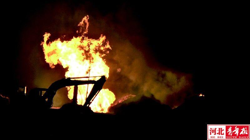 河北饶阳:天然气管道泄漏起火七八米火苗映红天
