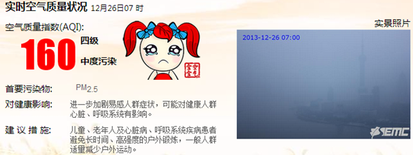 图说:上海环境监测实时监控数据。图片来源:上海环境监测中心
