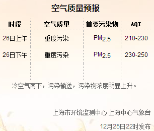 图说:26日空气质量预报。图片来源:上海环境监测中心