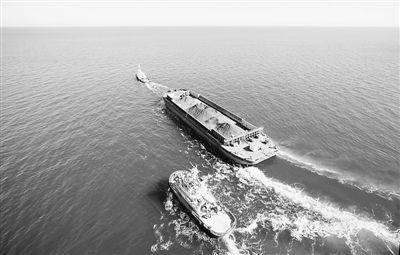 中澳铁矿装满精矿粉的驳船在拖船牵引下驶向离岸20公里外的转运船,然后由转运船将精矿粉装上开往中国的货船。刘晓岚摄