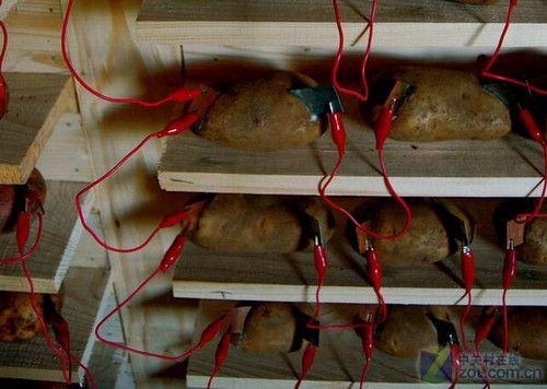 当然,如果有条件,还可以象第二位仁兄学习,组成非常豪华、非常奢侈、非常环保、非常强大的超牛土豆电池发电组,驱动一台电脑工作应该绰绰有余吧。