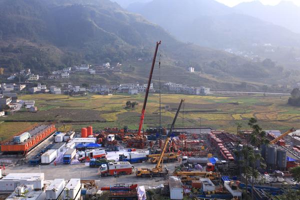 在四川盆地南缘的崇山峻岭之间,长宁—威远国家级页岩气示范区内各种机器设备正干得热火朝天——国内首次页岩气开发“工厂化”作业正在那里开展:目标井组长宁H3井组位于宜宾市珙县上罗镇,井场共布井6口,成2排分布,井间距5米,排距10米。