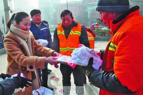 郑州一女子用年终奖买600双手套送给环卫工(图)