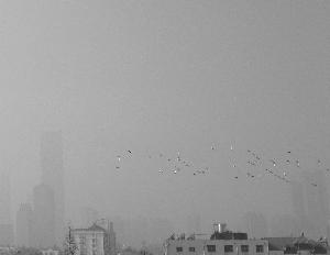雾霾锁城,鸟儿们能找到回家的路吗? 记者 徐洋 摄