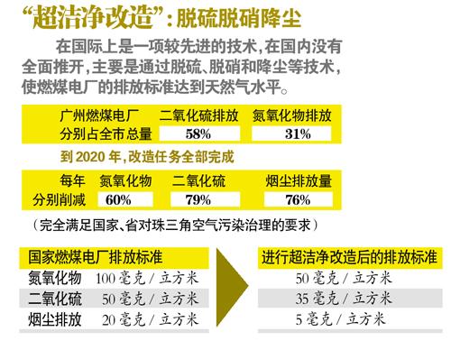 什么是“超洁净改造”呢?市发改委主任潘建国表示,主要是通过脱硫、脱硝和降尘等技术,使燃煤电厂的排放标准达到天然气的水平。广州市政府根据实际情况,借鉴国外经验,经过多轮的调查研究和企业的对接以及研究机构的反复进行测算,觉得是可以操作的。此外,恒运率先试点,也纳入了省试点的范围。