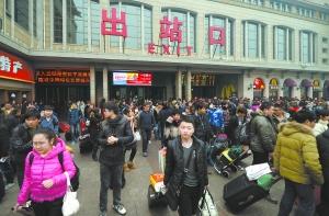 昨天是铁路春运最后一天,北京站出站口返程客流拥挤。记者 和冠欣摄
