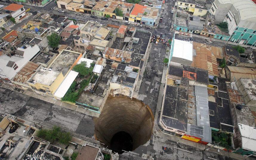 全球各色地陷事件:危地马拉巨型地坑深30米(图)