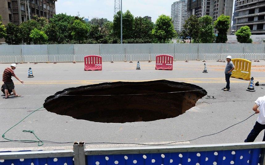 2012年7月,中国湖南省长沙市的马路上突然出现一个地陷坑洞。事故发生时约为凌晨1点多,造成一辆汽车坠入,1死3伤