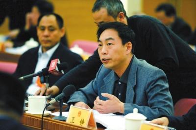 全国人大代表、北大附中校长王铮在北京团全团会议上发言。京华时报记者张斌摄