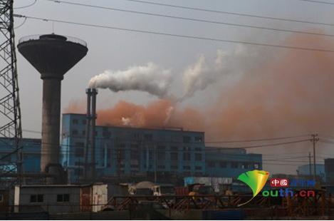 中国青年网记者在海威钢铁总部外看到红色的烟尘不断从厂房内冒出来,遮盖了半边天空。红色烟尘每隔十分钟左右就从厂房内冒出来,每次排放时间超过15分钟。大量的红色烟尘弥漫在海威钢铁周边。在海威钢铁厂区东面,一股青绿色污水从海威钢铁内汩汩流出,排入河道中,污水散发着特殊的金属臭味。