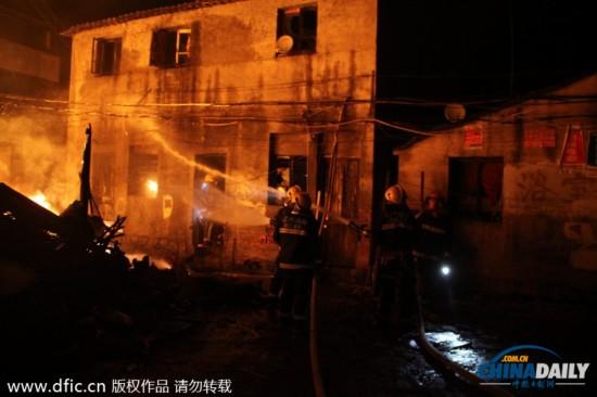 2014年3月29日晚21时40分,浙江省温州市瓯海区牛山消防中队接到报警,称位于鹿城区德政村横坦巷31号一民房发生火灾,接到报警后,牛山中队火速出动4辆消防车共27名消防官兵赶赴现场处置。牟财源 黄颖/东方IC