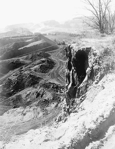 如今,6个村的民居大都被拆除,尤其是沙万村已不复存在,大片农田、林地被毁,村民流离失所。在露天开采工作面上,爆破声不绝于耳,大型挖掘机整日轰鸣,运土、运煤车队扬起的尘土遮天蔽日。