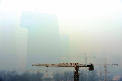 今年2月26日,北京遭遇严重雾霾,这是雾霾笼罩下的央视大楼。(资料图片)京华时报记者潘之望摄