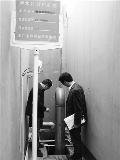 图为执法人员检查企业排污口。 李曜清摄