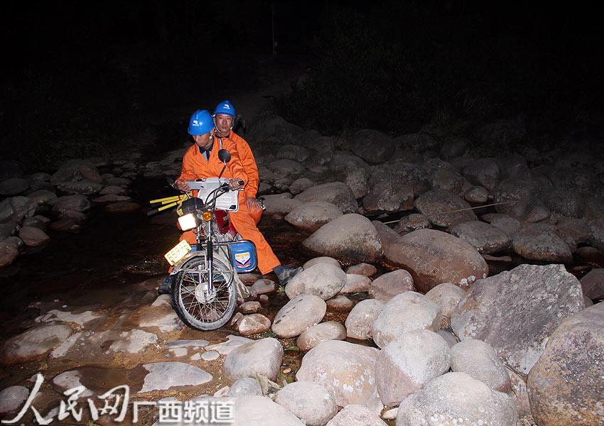 2011年9月30日,“纳沙”,“尼格”接踵而至,十万山多处树枝被折断后搭在线路上,有的供电实施还被雷击坏,造成隘脚村多处停电。因为不清楚故障点在哪里,兄弟俩只能骑上摩托车,走走停停,沿着山路去找。