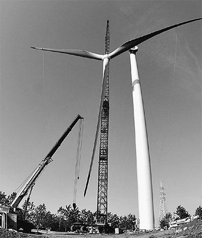 5月5日,工程技术人员正在安徽省滁州市来安县大唐风力发电场吊装发电风机。据国网安徽省电力公司消息,截至4月末,安徽电网风力发电装机规模达71.9万千瓦(相当于减少一座60万千瓦燃煤火力发电机组),风力发电全部优先上网并消纳,未发生过非正常脱网事故。预计,2015年安徽省风电装机规模将达到150万千瓦,相当于能满足滁州市“迎峰度夏”期间的最高负荷。
