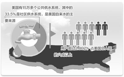 美国环境保护署公布的数据显示,美国有15万多个公共供水系统,其中的33.5%是社区供水系统,66.5%是非社区供水系统。社区供水系统是美国自来水的主要来源,用户超过2.86亿,占美国总人口的八成以上。为了加强对相关机构和设施的监管,保障饮用水安全,EPA自其成立以来不断增加监管权限。1986年的《安全饮用水法修正案》增加了环保署在保护国家饮用水方面的责任,强化环保署在处理突发事件和地下水回灌操作控制方面的执法权力,对违法者实行更为严厉的民事和刑事制裁。