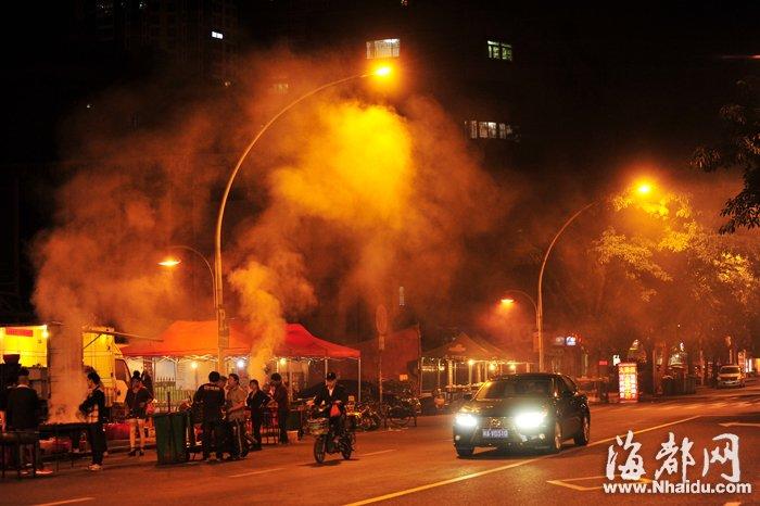 交通路露天烧烤摊的浓烟,弥漫了整条大街