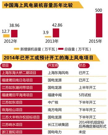 而最近又有消息称,2014年开工的海上风电项目或达到156.6万千瓦,是过去数年累计安装量的三倍,2015年及之后开工的项目更将达到355万千瓦。
