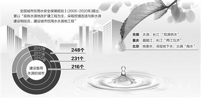 近年来,我国建设备用水源地的步伐不断加快。2010年,全国314个地级以上城市中,建设备用水源的只有216个城市,2011年增加到231个,2012年达到248个。“淄博的水源地和兰州水源地一样,都位于石化企业密集分布区域。近年来,环保部门通过约谈等方式,督促当地政府防范风险,建设太河水库水源地,目前新水源地已经开工建设。”郑丙辉说。曾深受太湖蓝藻事件之苦的无锡,已经率先形成了太湖、长江“双源供水、管网互通、双重保险”的格局。重庆水源也形成了嘉陵江、长江的“两江互济”格局。北京的水源地则更为多元,既有密云水库等地表水,也有深层地下水,今年还将迎来北调来的“南水”。