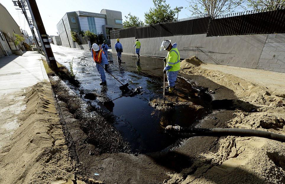 洛杉矶石油管道破裂上万加仑石油泄漏街头(图)(7)