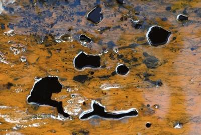 记者沿水渠顺流而下发现,水渠里每隔几米就放置一袋活性炭,以吸附泄漏的四氯乙烷。在各段水渠里,都可见黑乎乎的四氯乙烷沉在水底,一缕一缕,像漂浮的紫菜。事发地相对入水口来说地势较高,且越接近入水口,汇集过来的水量越大。