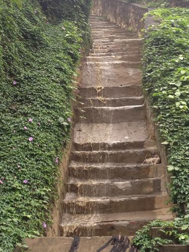 ④垃圾填埋场渗滤液一侧沿台阶而下的恶臭污水。 本组图片均由中国环境报记者姚伊乐摄