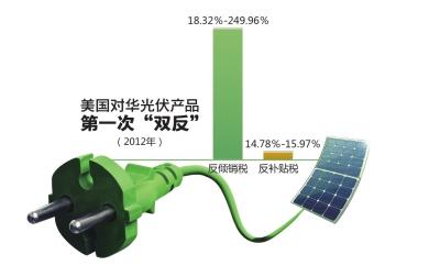 事实上,美国商务部曾于2012年裁定对中国晶体硅光伏电池及组件征收18.32%至249.96%的反倾销税,以及14.78%至15.97%的反补贴税。