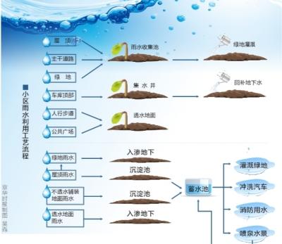 该负责人表示,本市建设的雨水利用工程主要分布在公园、学校、机关、部队、居民小区等公共场所,雨水利用的形式可归结为三类,一类是以下凹式绿地、透水地面铺装为代表的,以利于促进雨水入渗的雨水利用工程;一类是以人工湖、蓄水池为代表的,以利于积蓄利用、滞蓄减排为目的的雨水利用工程;另一类就是集两项或两项以上雨水入渗、积蓄、滞蓄减排技术措施于一体的综合雨水利用工程。