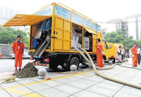 昨日上午,在车站北路万象新天公馆前坪,一台带有管道的黄色卡车吸引不少过往行人围观。原来,这台其貌不扬的卡车,是集中多项专利的液态环保综合处理设备——城市污水处理车。