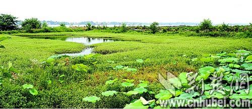 图为:湖边利用水草湿地净化水质。摄影记者 杨平