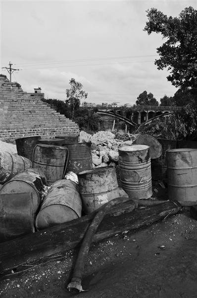 在紧靠白沙河的汽修厂,多处可见被废弃的油罐车专用的快速接油管。