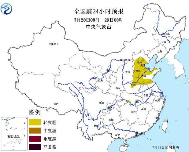 此外,据中央气象台最新消息,未来24小时京津冀将被轻度霾笼罩。