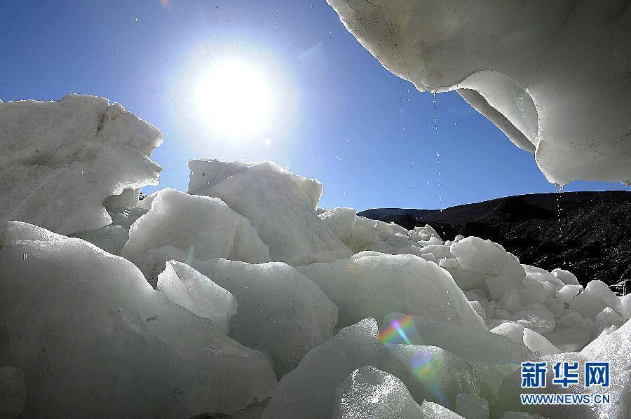 普若岗日冰原位于西藏那曲地区双湖县,是世界第三大冰川,按照冰川学界的划分,被归为“冰原”。冰原面积400多平方公里。冰原所处的青藏高原作为全球中纬度地区海拔最高的地域,受全球气候变暖影响明显。在过去30余年间,青藏高原海拔4000-5000米高度范围内年平均气温上升了1.8℃,远高于全国平均值。与此同时,普若岗日冰原已向上收缩约50米。新华社记者唐召明摄