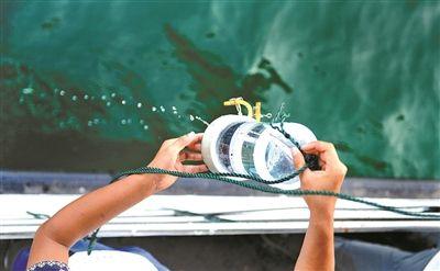 工作人员在丹江口水库取水样监测水质 摄影/本报记者 郝羿