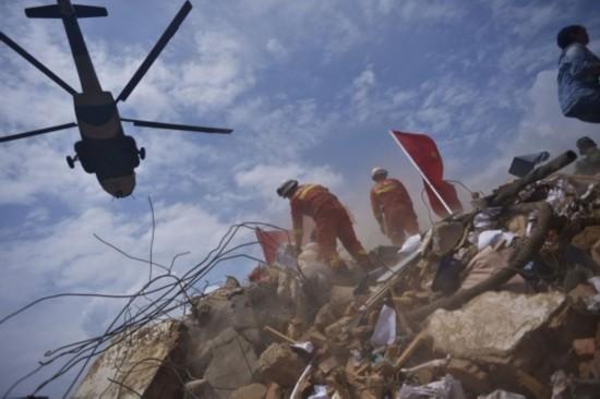 8月4日,云南鲁甸,救援人员正在废墟中搜索。赵永峰 摄