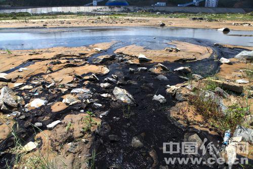 黑色污水排入悖牛川。