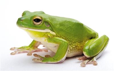 青蛙 背部黄绿或深绿色,有黑斑。头略呈三角形,眼圆而突出,能迅速发现飞虫。口大,舌根附于下颌前端,舌尖分叉,能突然翻出口外,捕食害虫。(记者吴振鹏)