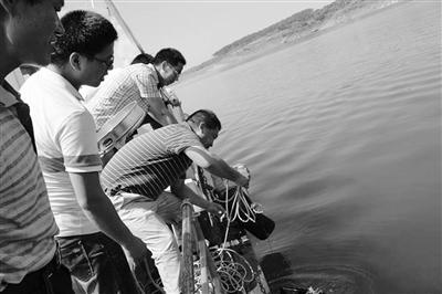 此次北京环科院工作人员除了要采集水样外,还要在库底采集底泥。