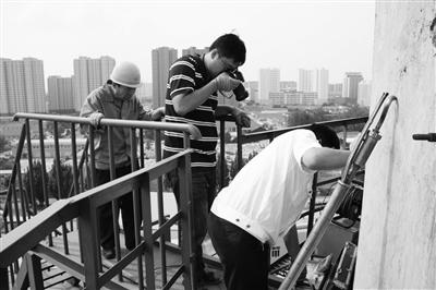 为让更多的公众了解环境保护工作,山东省青岛市环保局邀请公众现场参与环境监察工作。图为公众体验金田热电高空监测工作。青岛市城阳环境监察大队供图