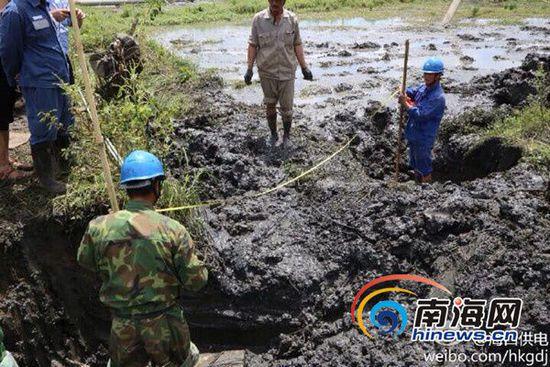 海口供电局工作人员在抢修海口城区的电缆。(通讯员 钟巍巍 摄)