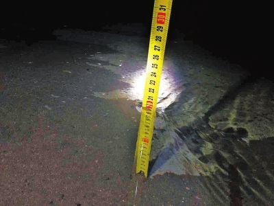 昨天23:30,“南水”终于在新郑闸口“露头”,水位从原来的16厘米升至19厘米。记者李康摄影