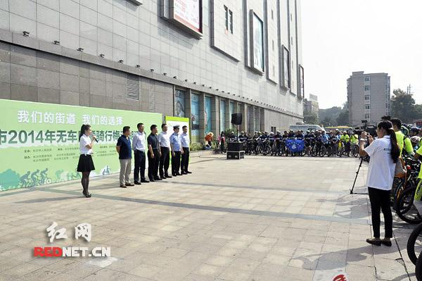 (9月21日上午,长沙市2014年无车日暨骑行梅溪湖活动在河西步步高广场举行。)