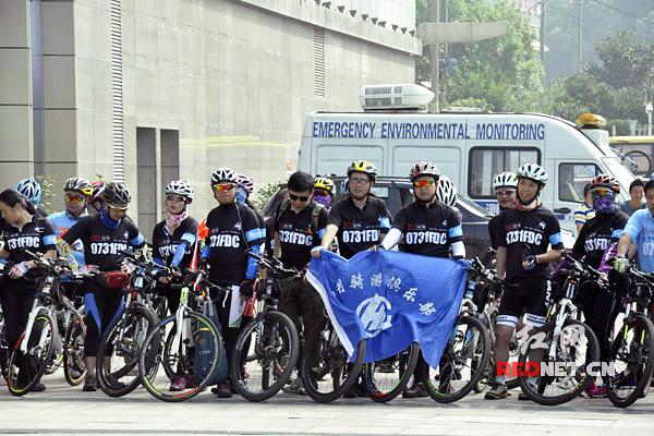 今天上午,长沙市2014年无车日暨骑行梅溪湖活动在河西步步高广场举行,长沙市政府面向市民发布了《绿色出行倡议书》,两百多名绿色出行志愿者沿着梅溪湖展开了一场公益骑行。