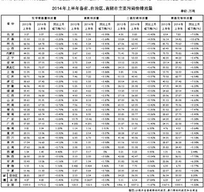 环境保护部有关负责人今日向媒体通报了《2014年上半年各省自治区直辖市主要污染物排放量指标公报》。这位负责人说,根据有关规定,环境保护部组织对2014年上半年各省、自治区、直辖市主要污染物总量减排情况进行了核查核算。结果表明,2014年上半年,全国化学需氧量排放总量1172.2万吨,同比下降2.26%;氨氮排放总量122.5万吨,同比下降2.67%;二氧化硫排放总量1037.2万吨,同比下降1.87%;氮氧化物排放总量1099.5万吨,同比下降5.82%。其中,氮氧化物减排创造了“十二五”以来最好成绩,也为全面完成“十二五”减排目标任务打下了良好的基础。