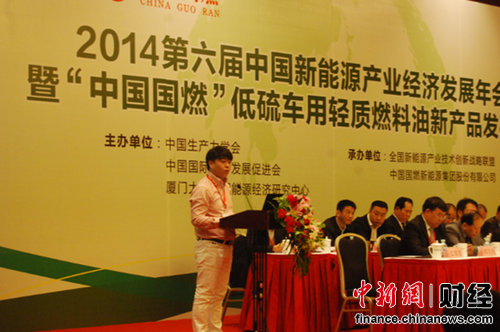 中新网9月30日电 9月27日,由中国国际经济发展促进会、中国生产力学会、厦门大学中国能源经济研究中心主办的国内行业最具影响力品牌年会2014中国新能源产业经济发展年会暨“中国国燃”低硫车用轻质燃料油新产品发布会在北京国家会议中心举行,国务院有关部委领导及地方政府官员、数百家企业代表出席了会议。此次会上中国国燃新能源集团股份有限公司正式推出低硫车用轻质燃油新产品及环保解决方案。