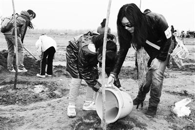 植树英雄、全国劳动模范马永顺的孙子、哈尔滨市环保风范人物马立志专程从家乡伊春赶来参加植树活动。“刨大坑,栽当中,不窝根,踩实成,不透风”,他告诉大家小时候爷爷教他的植树方法,向大家讲解提高种植树苗成活率的要领,希望同所有的植树者一起为第二故乡增添一片绿色,为冰城防霾治污种下一棵“环保树”。