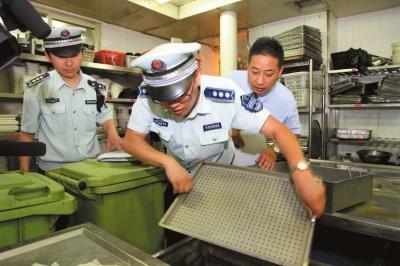 ③城管检查厨房垃圾。京华时报记者欧阳晓菲摄